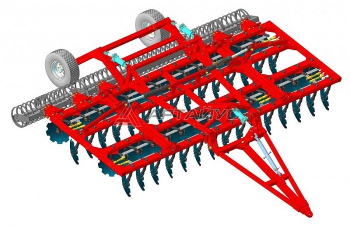 Расположение каждого диска на индивидуальной оси, независимое рядное регулирование углов атаки дисков способствуют улучшению агротехнических показателей обработки почвы, а так же снижению тягового усилия трактора. Отсутствие единой оси для нескольких дисков исключает наматывание растительных остатков и отпадает необходимость в применении в конструкции чистиков. БДМ позволяет сократить время обработки почвы в 2-3 раза за счет четырехрядного расположения дисков, совмещающие 3-5 операций за один проход.