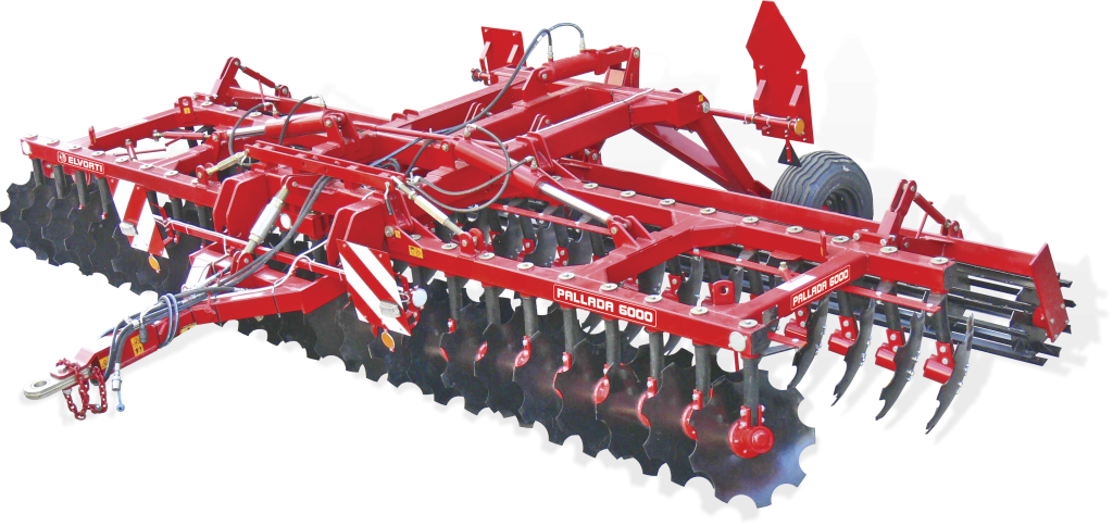 Дисковые двухрядные бороны серии PALLADA 6000 – многофункциональные орудия, с рабочей шириной 6 м. Оснащёны дисками 560 мм. Размеры дисков позволяют хорошо перемалывать пожнивные остатки при большой ширине захвата. При этом угол атаки диска можно подстроить под глубину обработки. На больших полях особенно видна внушительная производительность до 7,2 гектаров в час. Это сводит общие затраты на гектар к минимуму.