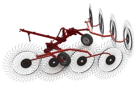 Грабли агрегатируются с тракторами тягового класса 6-14 кН, оборудованы гидравлическим механизмом перевода машины из рабочего положения в транспортное и наоборот. Привод рабочих органов (рабочих колѐс) осуществляется за счѐт сцепления их с почвой.